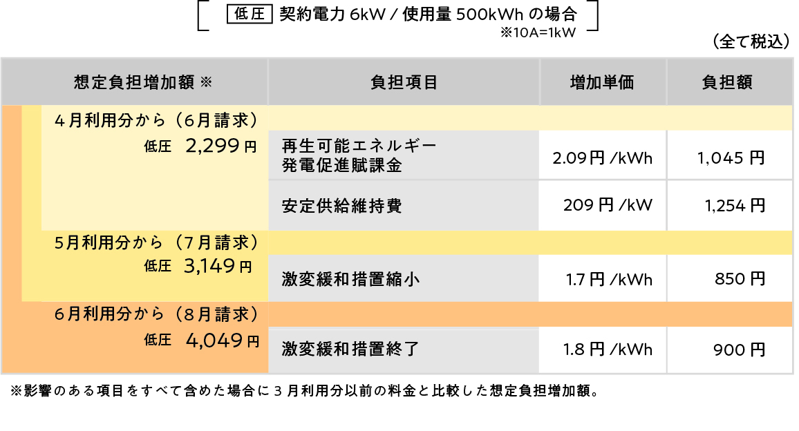 期間:2024年4月使用分(5月検針、6月請求)~2025年3月使用分(4月検針、5月請求) 再生可能エネルギー発電促進賦課金単価:3.49円/kWh